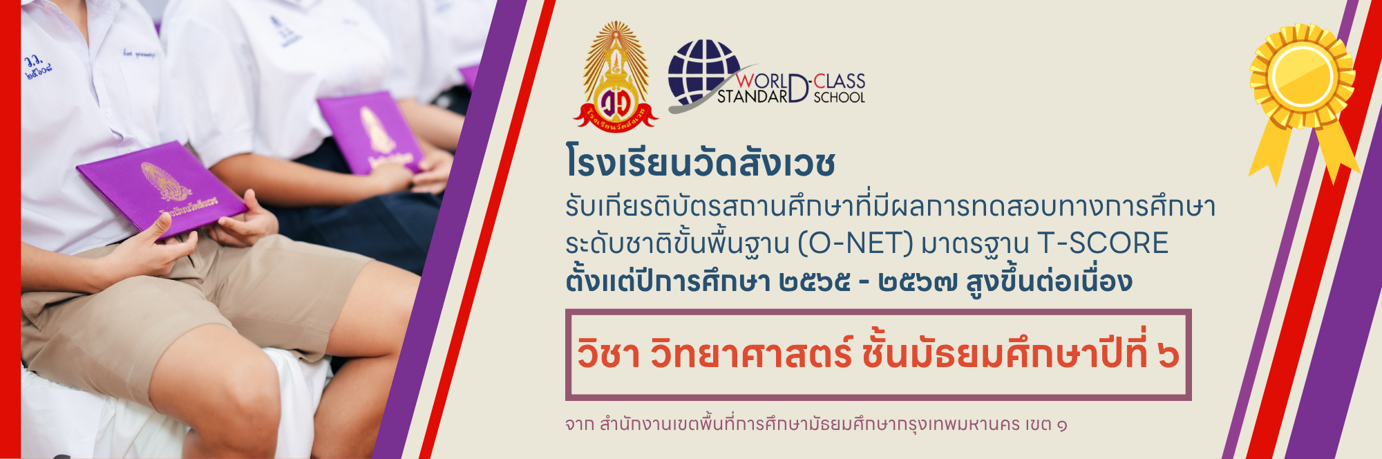 โรงเรียนวัดสังเวชรับเกียรติบัตรสถานศึกษาที่มีผลการทดสอบทางการศึกษาระดับชาติขั้นพื้นฐาน O-NET มาตรฐาน T-SCORE สูงขึ้นต่อเนื่องตั้งแต่ปีการศึกษา 2565 – 2567 ในรายวิชาวิทยาศาสตร์ ชั้นมัธยมศึกษาปีที่ 6