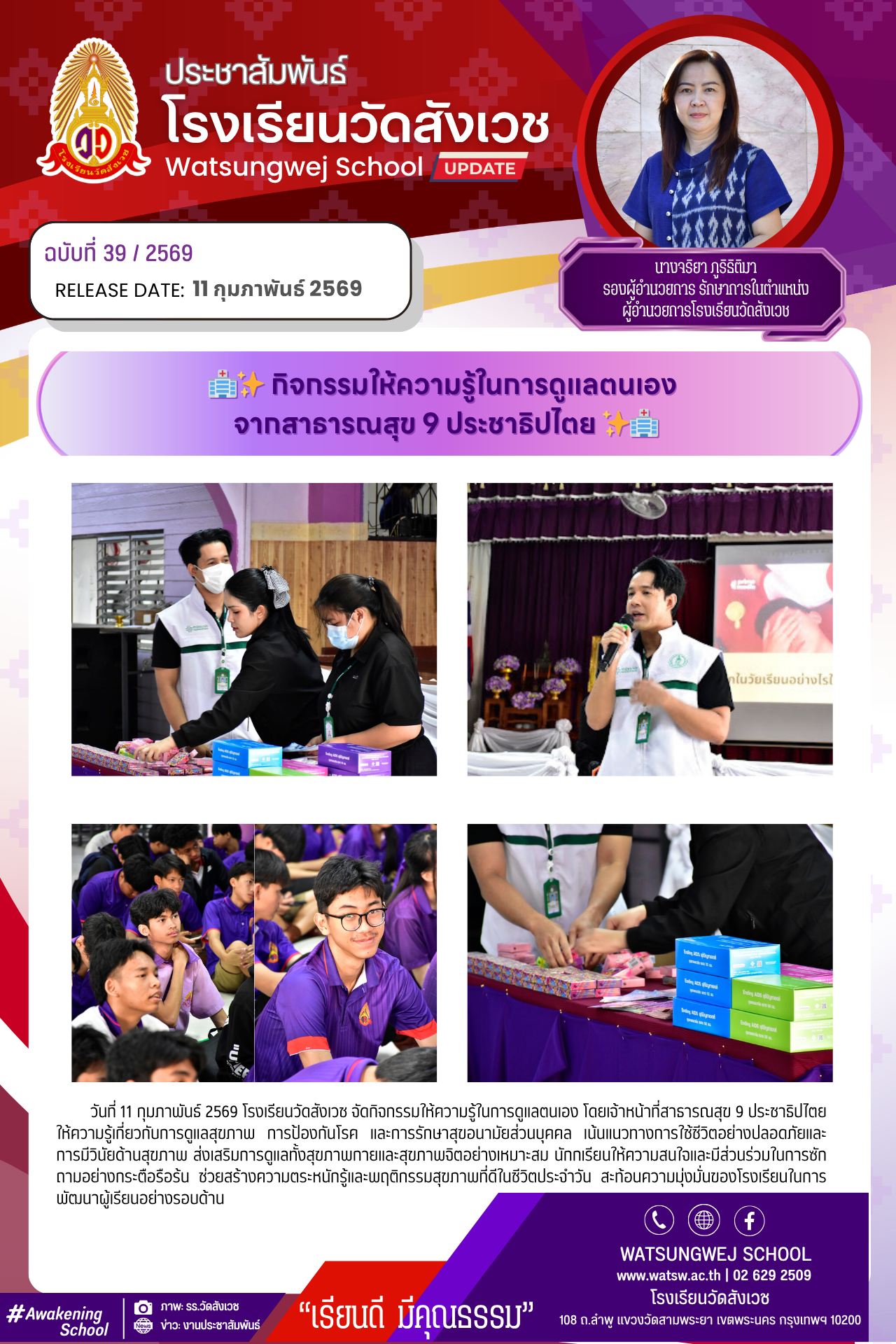āļ§āļąāļāļāļĩāđ 11 āļāļļāļĄāļ āļēāļāļąāļāļāđ 2569 āđāļĢāļāđāļĢāļĩāļĒāļāļ§āļąāļāļŠāļąāļāđāļ§āļ āļāļąāļāļāļīāļāļāļĢāļĢāļĄāđāļŦāđāļāļ§āļēāļĄāļĢāļđāđāđāļāļāļēāļĢāļāļđāđāļĨāļāļāđāļāļ āđāļāļĒāđāļāđāļēāļŦāļāđāļēāļāļĩāđāļŠāļēāļāļēāļĢāļāļŠāļļāļ 9 āļāļĢāļ°āļāļēāļāļīāļāđāļāļĒāđāļŦāđāļāļ§āļēāļĄāļĢāļđāđāđāļāļĩāđāļĒāļ§āļāļąāļāļāļēāļĢāļāļđāđāļĨāļŠāļļāļāļ āļēāļ āļāļēāļĢāļāđāļāļāļāļąāļāđāļĢāļ āđāļĨāļ°āļāļēāļĢāļĢāļąāļāļĐāļēāļŠāļļāļāļāļāļēāļĄāļąāļĒāļŠāđāļ§āļāļāļļāļāļāļĨ āđāļāđāļāđāļāļ§āļāļēāļāļāļēāļĢāđāļāđāļāļĩāļ§āļīāļāļāļĒāđāļēāļāļāļĨāļāļāļ āļąāļĒāđāļĨāļ°āļāļēāļĢāļĄāļĩāļ§āļīāļāļąāļĒāļāđāļēāļāļŠāļļāļāļ āļēāļ āļŠāđāļāđāļŠāļĢāļīāļĄāļāļēāļĢāļāļđāđāļĨāļāļąāđāļāļŠāļļāļāļ āļēāļāļāļēāļĒāđāļĨāļ°āļŠāļļāļāļ āļēāļāļāļīāļāļāļĒāđāļēāļāđāļŦāļĄāļēāļ°āļŠāļĄ āļāļąāļāļāđāļĢāļĩāļĒāļāđāļŦāđāļāļ§āļēāļĄāļŠāļāđāļāđāļĨāļ°āļĄāļĩāļŠāđāļ§āļāļĢāđāļ§āļĄāđāļāļāļēāļĢāļāļąāļāļāļēāļĄāļāļĒāđāļēāļāļāļĢāļ°āļāļ·āļāļĢāļ·āļāļĢāđāļ āļāđāļ§āļĒāļŠāļĢāđāļēāļāļāļ§āļēāļĄāļāļĢāļ°āļŦāļāļąāļāļĢāļđāđāđāļĨāļ°āļāļĪāļāļīāļāļĢāļĢāļĄāļŠāļļāļāļ āļēāļāļāļĩāđāļāļĩāđāļāļāļĩāļ§āļīāļāļāļĢāļ°āļāļģāļ§āļąāļ āļŠāļ°āļāđāļāļāļāļ§āļēāļĄāļĄāļļāđāļāļĄāļąāđāļāļāļāļāđāļĢāļāđāļĢāļĩāļĒāļāđāļāļāļēāļĢāļāļąāļāļāļēāļāļđāđāđāļĢāļĩāļĒāļāļāļĒāđāļēāļāļĢāļāļāļāđāļēāļ