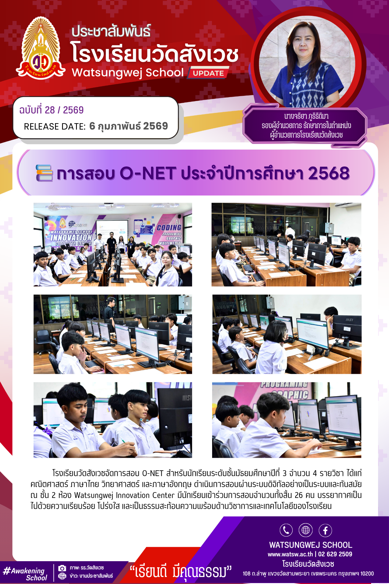 āđāļĢāļāđāļĢāļĩāļĒāļāļ§āļąāļāļŠāļąāļāđāļ§āļāļāļąāļāļāļēāļĢāļŠāļāļ O-NET āļŠāļģāļŦāļĢāļąāļāļāļąāļāđāļĢāļĩāļĒāļāļĢāļ°āļāļąāļāļāļąāđāļāļĄāļąāļāļĒāļĄāļĻāļķāļāļĐāļēāļāļĩāļāļĩāđ 3 āļāļģāļāļ§āļ 4 āļĢāļēāļĒāļ§āļīāļāļē āđāļāđāđāļāđ āļāļāļīāļāļĻāļēāļŠāļāļĢāđ āļ āļēāļĐāļēāđāļāļĒ āļ§āļīāļāļĒāļēāļĻāļēāļŠāļāļĢāđ āđāļĨāļ°āļ āļēāļĐāļēāļāļąāļāļāļĪāļĐ āļāļģāđāļāļīāļāļāļēāļĢāļŠāļāļāļāđāļēāļāļĢāļ°āļāļāļāļīāļāļīāļāļąāļĨāļāļĒāđāļēāļāđāļāđāļāļĢāļ°āļāļāđāļĨāļ°āļāļąāļāļŠāļĄāļąāļĒāļ āļāļąāđāļ 2 āļŦāđāļāļ Watsungwej Innovation Center āļĄāļĩāļāļąāļāđāļĢāļĩāļĒāļāđāļāđāļēāļĢāđāļ§āļĄāļāļēāļĢāļŠāļāļāļāļģāļāļ§āļāļāļąāđāļāļŠāļīāđāļ 26 āļāļ āļāļĢāļĢāļĒāļēāļāļēāļĻāđāļāđāļāđāļāļāđāļ§āļĒāļāļ§āļēāļĄāđāļĢāļĩāļĒāļāļĢāđāļāļĒ āđāļāļĢāđāļāđāļŠ āđāļĨāļ°āđāļāđāļāļāļĢāļĢāļĄāļŠāļ°āļāđāļāļāļāļ§āļēāļĄāļāļĢāđāļāļĄāļāđāļēāļāļ§āļīāļāļēāļāļēāļĢāđāļĨāļ°āđāļāļāđāļāđāļĨāļĒāļĩāļāļāļāđāļĢāļāđāļĢāļĩāļĒāļ