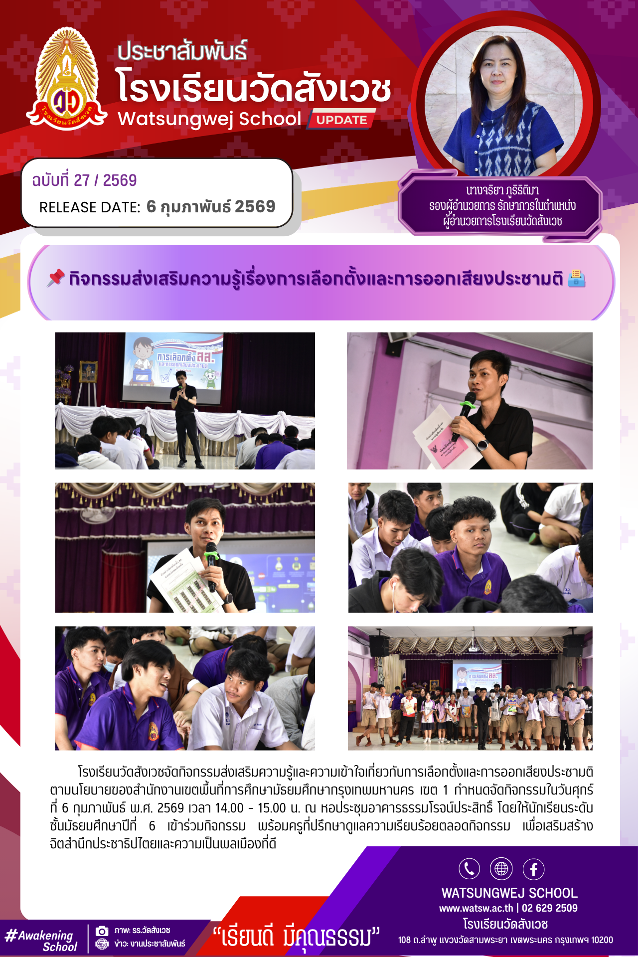 āđāļĢāļāđāļĢāļĩāļĒāļāļ§āļąāļāļŠāļąāļāđāļ§āļāļāļąāļāļāļīāļāļāļĢāļĢāļĄāļŠāđāļāđāļŠāļĢāļīāļĄāļāļ§āļēāļĄāļĢāļđāđāđāļĨāļ°āļāļ§āļēāļĄāđāļāđāļēāđāļāđāļāļĩāđāļĒāļ§āļāļąāļāļāļēāļĢāđāļĨāļ·āļāļāļāļąāđāļāđāļĨāļ°āļāļēāļĢāļāļāļāđāļŠāļĩāļĒāļāļāļĢāļ°āļāļēāļĄāļāļīāļāļēāļĄāļāđāļĒāļāļēāļĒāļāļāļāļŠāļģāļāļąāļāļāļēāļāđāļāļāļāļ·āđāļāļāļĩāđāļāļēāļĢāļĻāļķāļāļĐāļēāļĄāļąāļāļĒāļĄāļĻāļķāļāļĐāļēāļāļĢāļļāļāđāļāļāļĄāļŦāļēāļāļāļĢ āđāļāļ 1 āļāļģāļŦāļāļāļāļąāļāļāļīāļāļāļĢāļĢāļĄāđāļāļ§āļąāļāļĻāļļāļāļĢāđāļāļĩāđ 6 āļāļļāļĄāļ āļēāļāļąāļāļāđ āļ.āļĻ. 2569 āđāļ§āļĨāļē 14.00 â 15.00 āļ. āļ āļŦāļāļāļĢāļ°āļāļļāļĄāļāļēāļāļēāļĢāļāļĢāļĢāļĄāđāļĢāļāļāđāļāļĢāļ°āļŠāļīāļāļāļīāđ āđāļāļĒāđāļŦāđāļāļąāļāđāļĢāļĩāļĒāļāļĢāļ°āļāļąāļāļāļąāđāļāļĄāļąāļāļĒāļĄāļĻāļķāļāļĐāļēāļāļĩāļāļĩāđ 6 āđāļāđāļēāļĢāđāļ§āļĄāļāļīāļāļāļĢāļĢāļĄ āļāļĢāđāļāļĄāļāļĢāļđāļāļĩāđāļāļĢāļķāļāļĐāļēāļāļđāđāļĨāļāļ§āļēāļĄāđāļĢāļĩāļĒāļāļĢāđāļāļĒāļāļĨāļāļāļāļīāļāļāļĢāļĢāļĄ āđāļāļ·āđāļāđāļŠāļĢāļīāļĄāļŠāļĢāđāļēāļāļāļīāļāļŠāļģāļāļķāļāļāļĢāļ°āļāļēāļāļīāļāđāļāļĒāđāļĨāļ°āļāļ§āļēāļĄāđāļāđāļāļāļĨāđāļĄāļ·āļāļāļāļĩāđāļāļĩ